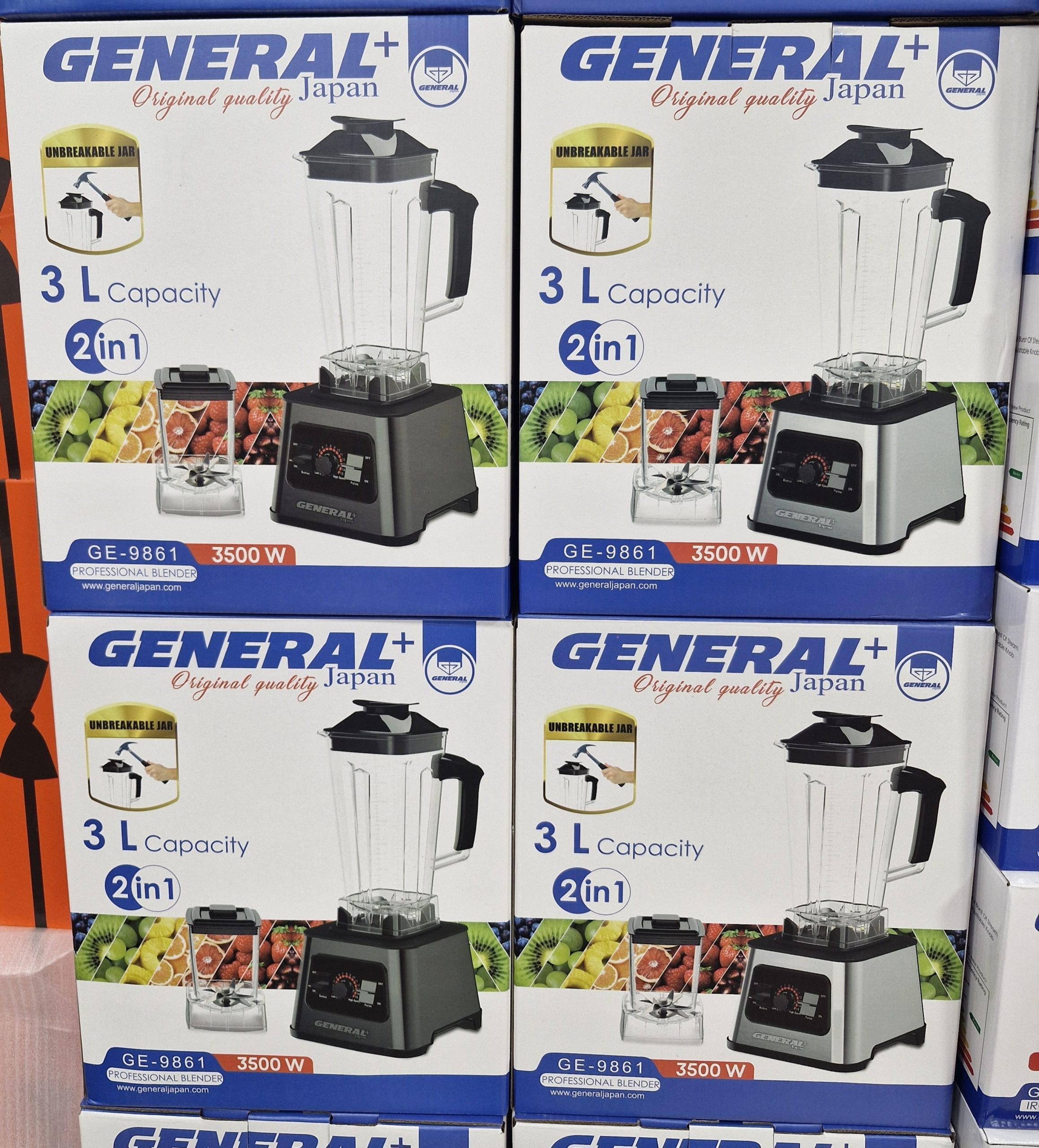 مخلوطکن حرفهای جنرال مدل GE-9861 یک دستگاه قدرتمند و کاربردی است که برای مصارف خانگی و نیمهحرفهای طراحی شده است. در ادامه، مشخصات و ویژگیهای این مدل را بررسی میکنیم: